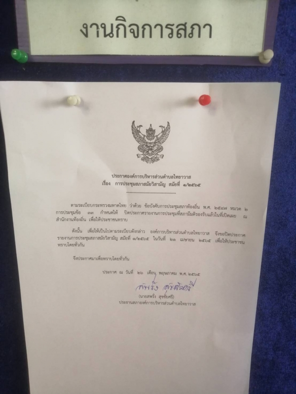 รายงานการประชุมสภาสมัยวิสามัญ สมัยที่ 1/2565 (วันที่ 21 เมษายน 2565)