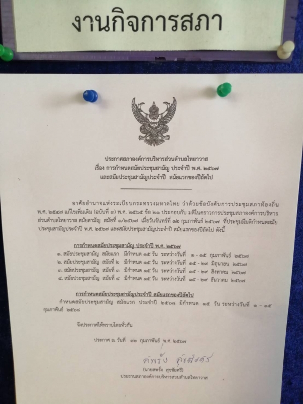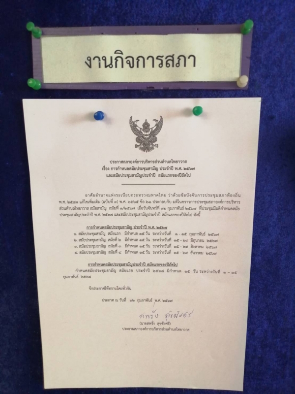 ประกาศกำหนดสมัยประชุมสภาองค์การบริหารส่วนตำบลไทยาวาส ประจำปี 2567