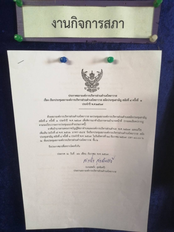 ประกาศการประชุมสภา อบต.ไทยาวาส สมัยสามัญ สมัยที่ 4/2567