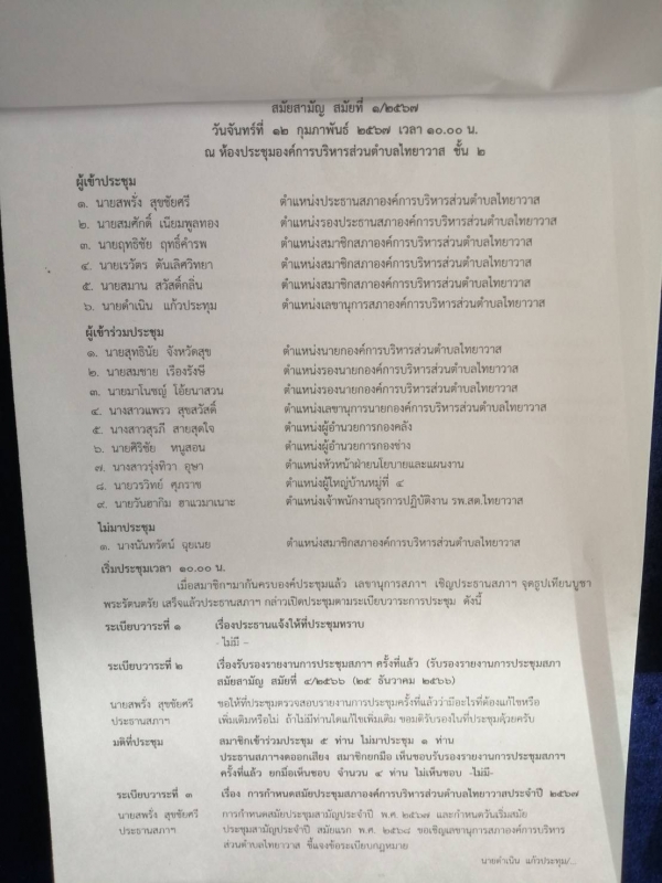 รายงานการประชุมสภาสมัยสามัญ สมัยที่ 1/2567 (12 กุมภาพันธ์ 2567)