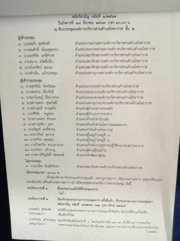 รายงานการประชุมสภาสมัยวิสามัญ สมัยที่ 1/2567 (19 มีนาคม 2567)
