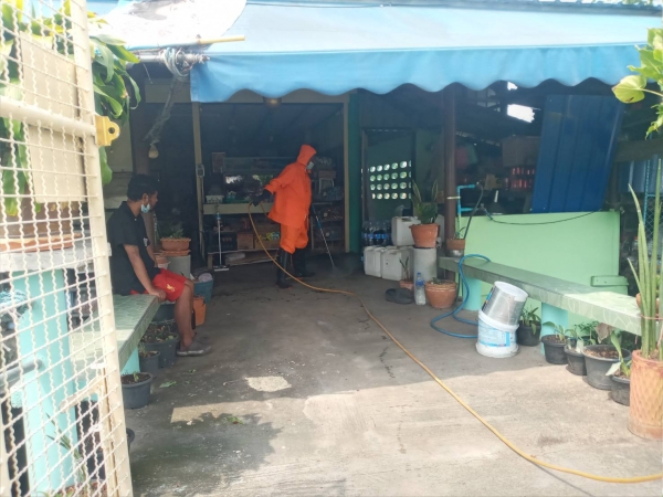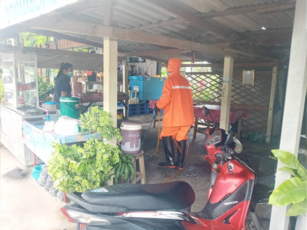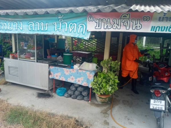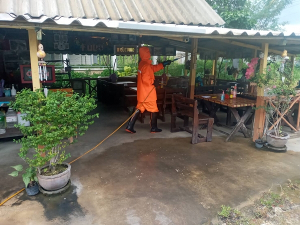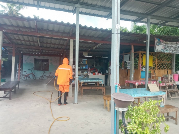 พ่นฆ่าเชื้อป้องกันการแพร่ระบาดของเชื้อไวรัสโคโรน่า 2019 (COVID - 19) บริเวณสถานที่เสี่ยง ตำบลไทยาวาส