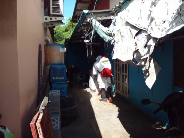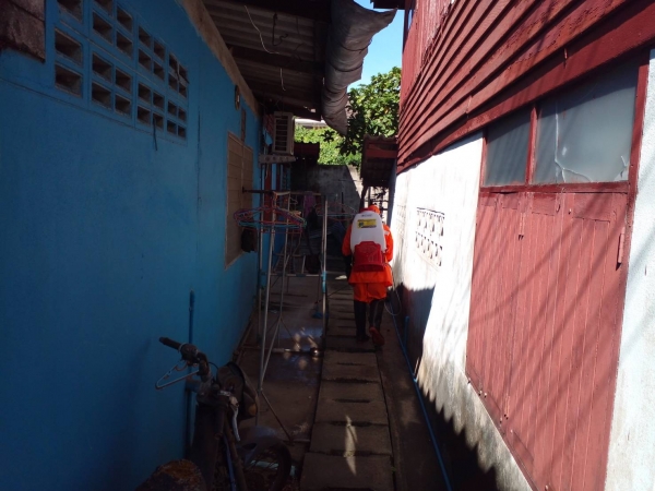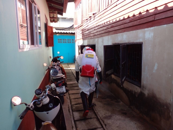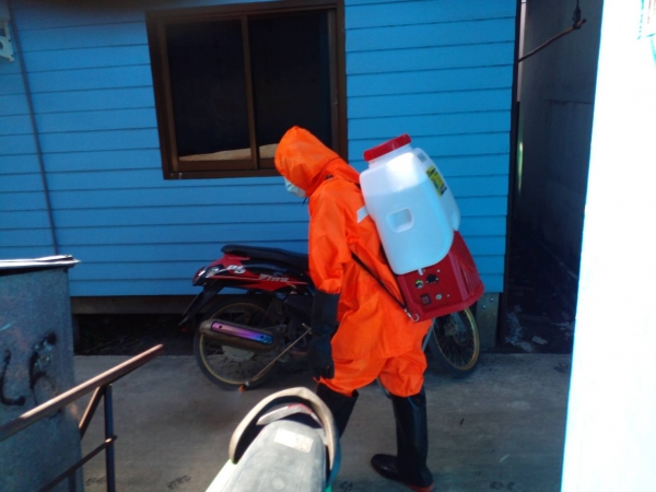 พ่นฆ่าเชื้อป้องกันการแพร่ระบาดของเชื้อไวรัสโคโรน่า 2019 (COVID - 19) บริเวณบ้านผู้เสี่ยงสูง หมู่ที่ 1