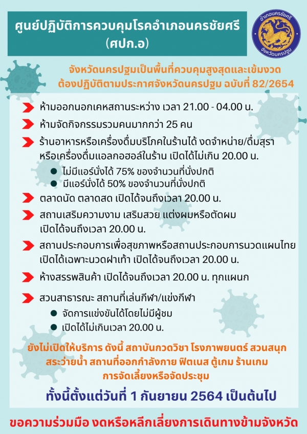 ประกาศจังหวัดรครปฐม ฉบับที่ 82/2564
