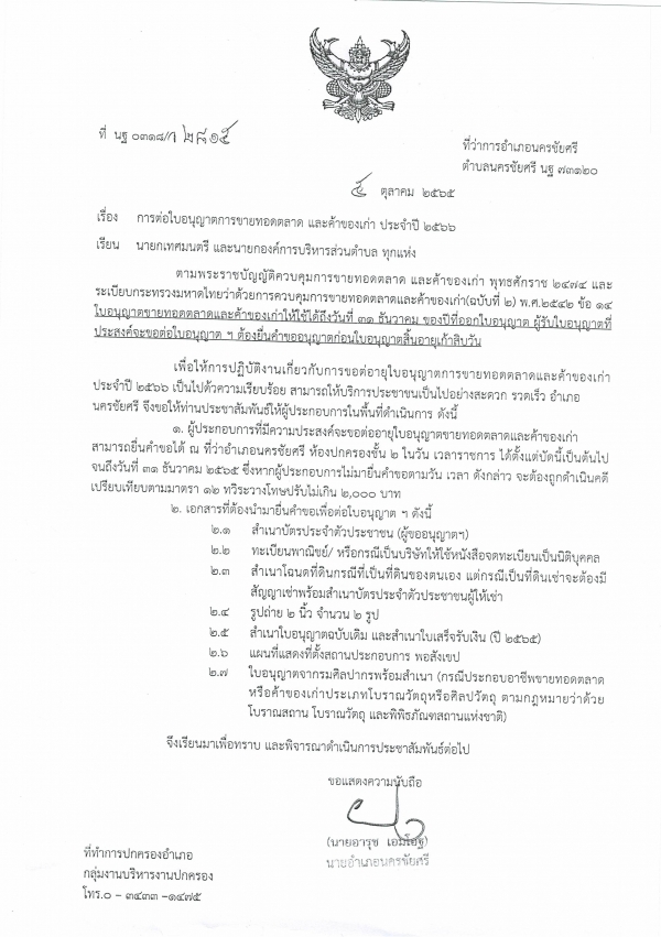 ณ ที่ว่าการอำเภอนครชัยศรี ห้องปกครอง ชั้น 2 ในวันและเวลาราชการ ได้ตั้งแต่วันนี้ จนถึงวันที่ 31 ธันวาคม 2565