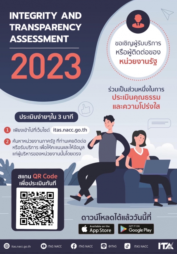 องค์การบริหารส่วนตำบลไทยาวาส ขอเชิญผู้รับบริการหรือผู้ติดต่อของหน่วยงานรัฐ ร่วมเป็นส่วนหนึ่งในการประเมินคุณธรรมและความโปร่งใส" ประจำปี 2566