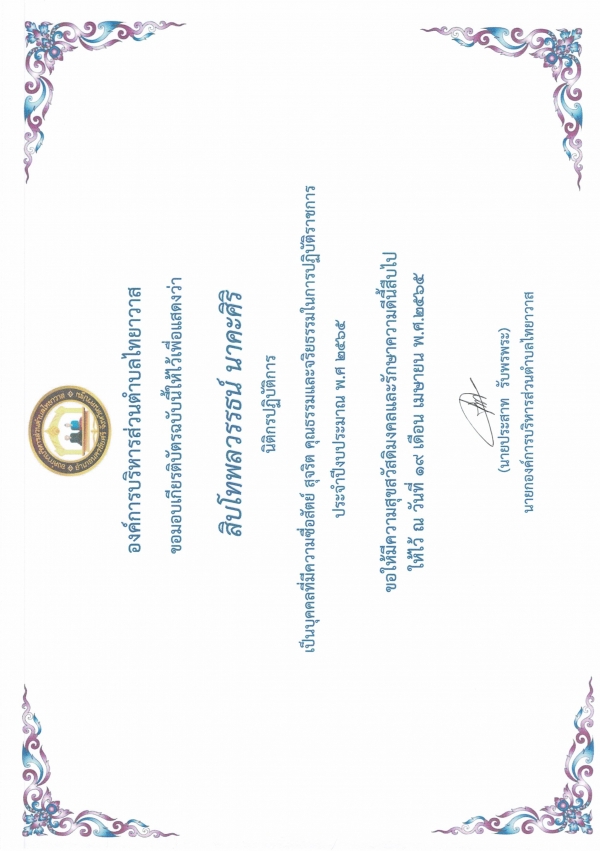 ยกย่องเชิดชูเกียรติบุคคลที่มีความซื่อสัตย์ ทุจริต ประจำปีงบประมาณ พ.ศ. 2565