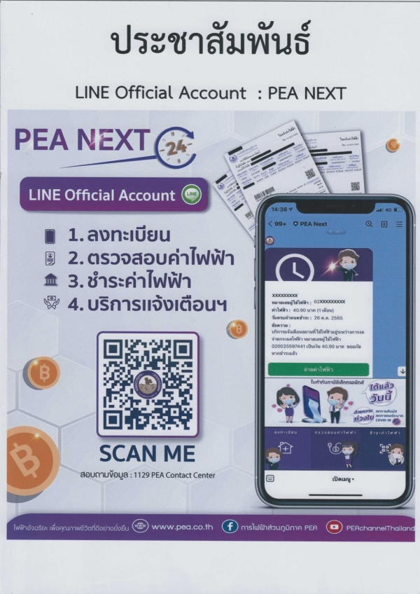 การไฟฟ้าแจ้งประชาสัมพันธ์ ช่องทางการลงทะเบียน การตรวจสอบค่าไฟฟ้า ชำระค่าไฟฟ้า บริการแจ้งเตือนฯ และช่องทางการแจ้งกระแสไฟฟ้าขัดข้อง