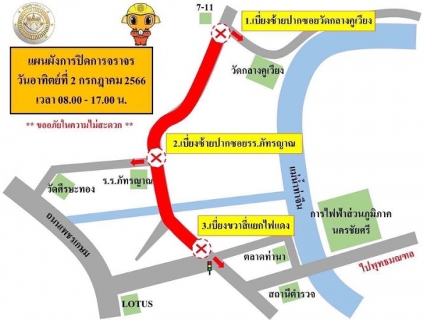 จึงขอประชาสัมพันธ์ให้ทราบโดยทั่วกัน เพื่อหลีกเลี่ยงการใช้เส้นทางดังกล่าว ในวันและเวลาที่ระบุข้างต้น