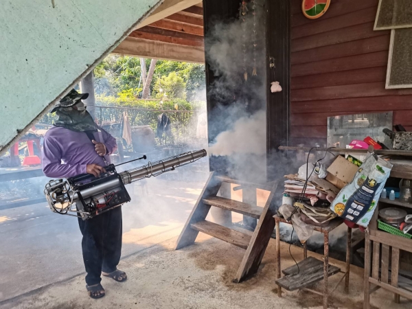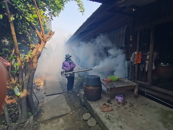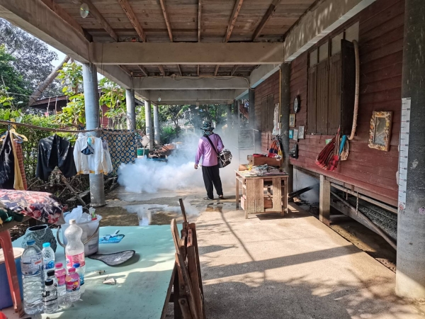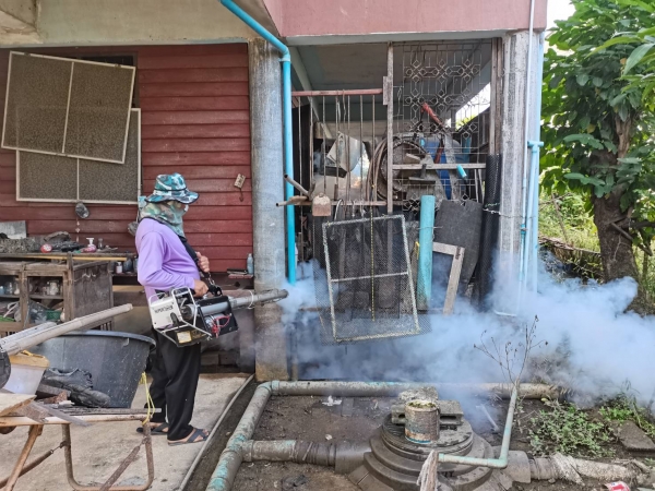 อบต.ไทยาวาส ออกฉีดพ่นหมอกควันกำจัดยุงลาย