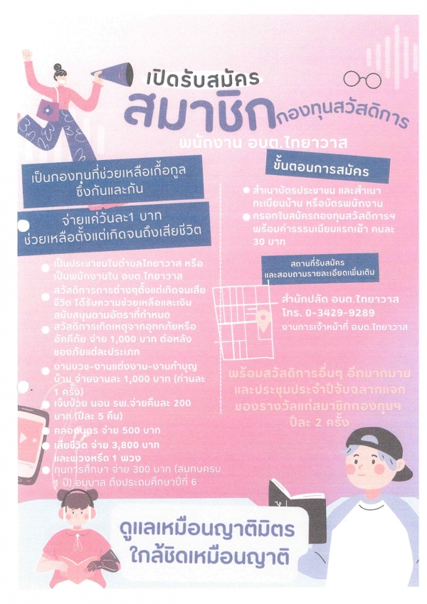 องค์การบริหารส่วนตำบลไทยาวาส เปิดรับสมัครสมาชิกกองทุนสวัสดิการ พนักงาน อบต.ไทยาวาส เพื่อเป็นการช่วยเหลือเกื้อกูลซึ่งกันและกัน