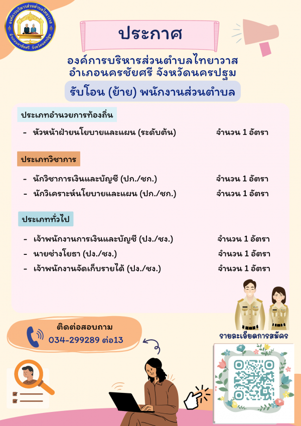 องค์การบริหารส่วนตำบลไทยาวาส รับโอน(ย้าย)พนักงานส่วนตำบล