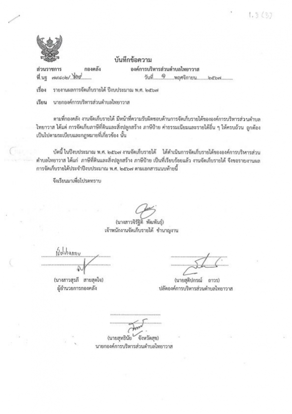 สรุปผลการจัดเก็บภาษีเเละค่าธรรมเนียม ประจำปี 2567