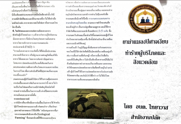 ประชาสัมพันธ์รณรงค์การใช้ยาฆ่าแมลงปีศษจเงียบ ทำร้ายผู้บริโภคและสิ่งแวดล้อม