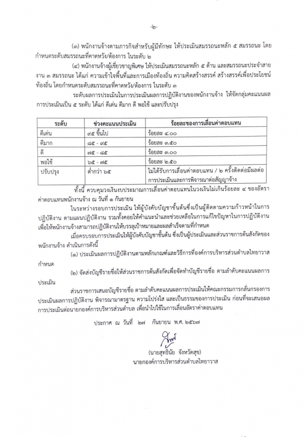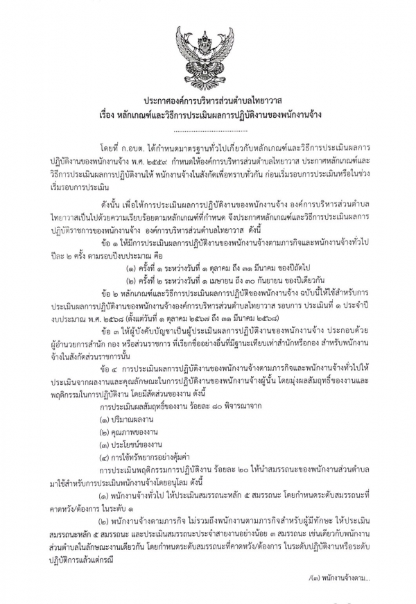 ประกาศ หลักเกณฑ์และวิธีการประเมินผลการปฎิบัติงานของพนักงานจ้าง 2568