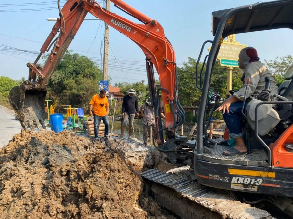 นายประสาท รับพรพระ นายกองค์การบริหารส่วนตำบลไทยาวาส ลงพื้นที่ร่วมกับพนักงานเจ้าหน้าที่ ตรวจสอบและแก้ไขระบบน้ำเพื่อการเกษตร หมู่ที่ 4