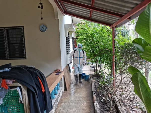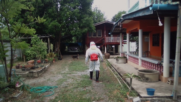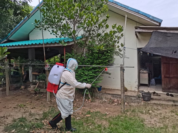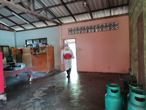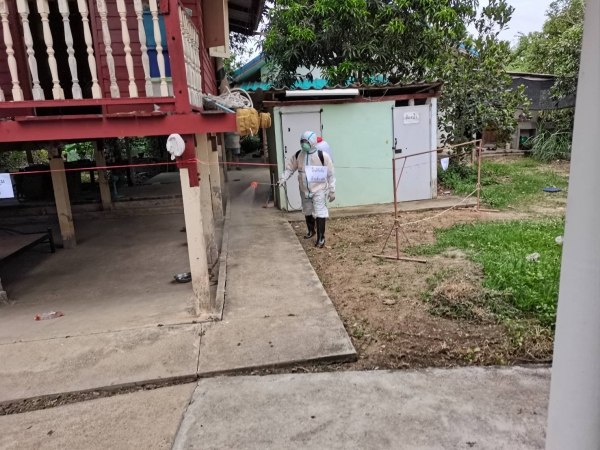 พ่นฆ่าเชื้อป้องกันการแพร่ระบาดของเชื้อไวรัสโคโรน่า 2019 (COVID - 19) บริเวณบ้านผู้เสี่ยงสูง หมู่ที่ 3