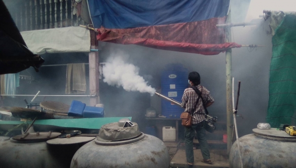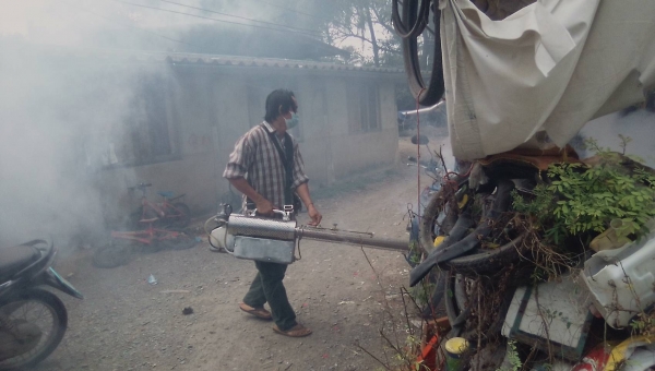 พ่นหมอกควัน กรณีพบผู้ป่วยโรคไข้เลือดออก หมู่ที่ 4