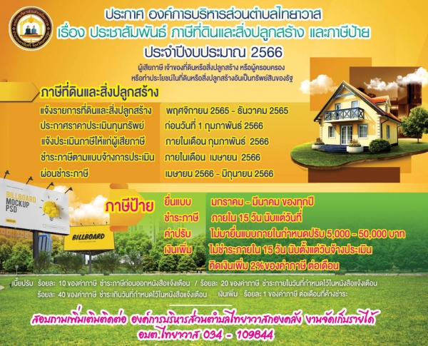 ประชาสัมพันธ์ เรื่องภาษีที่ดินและสิ่งปลูกสร้าง และภาษีป้าย ประจำปี 2566